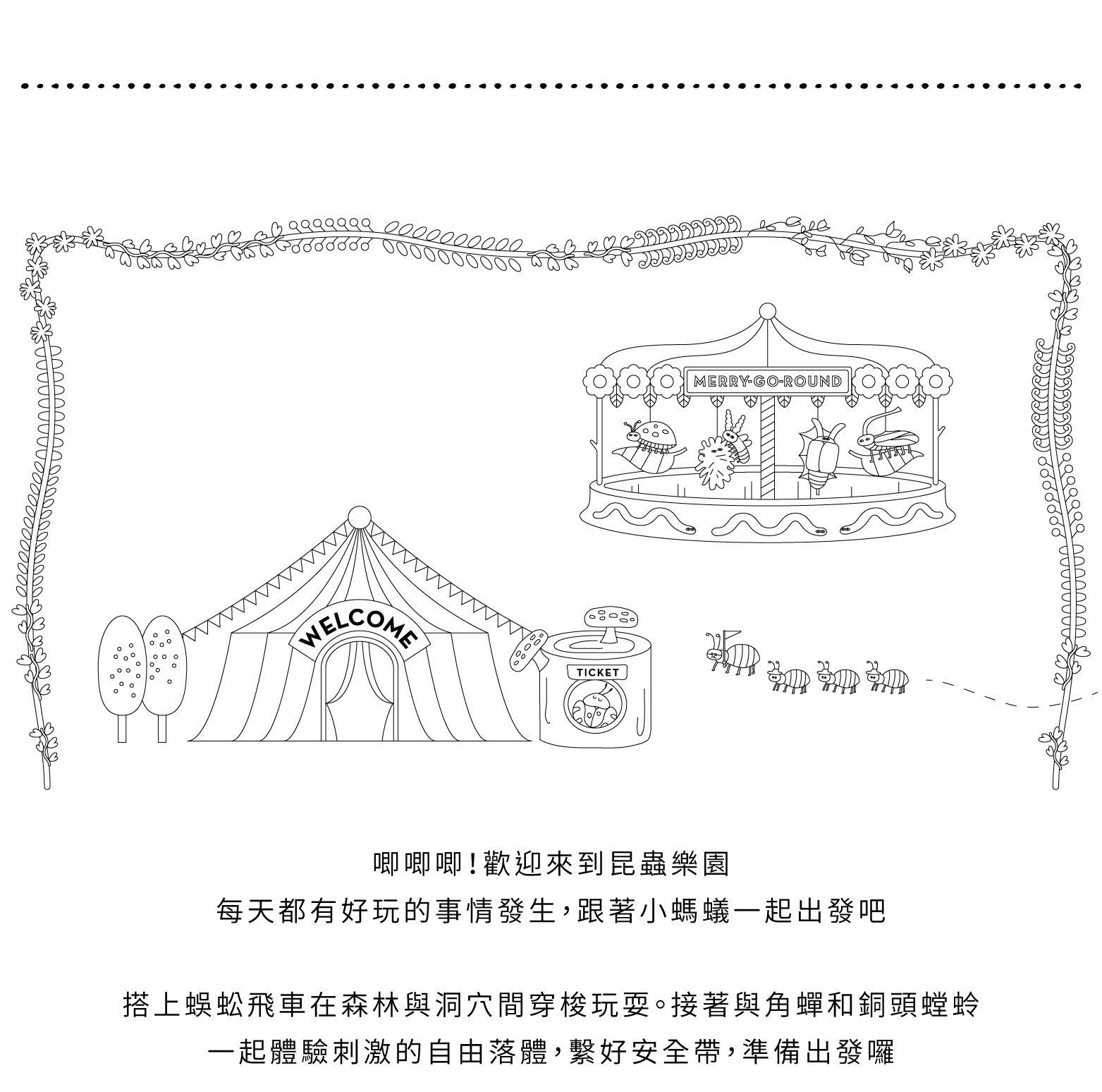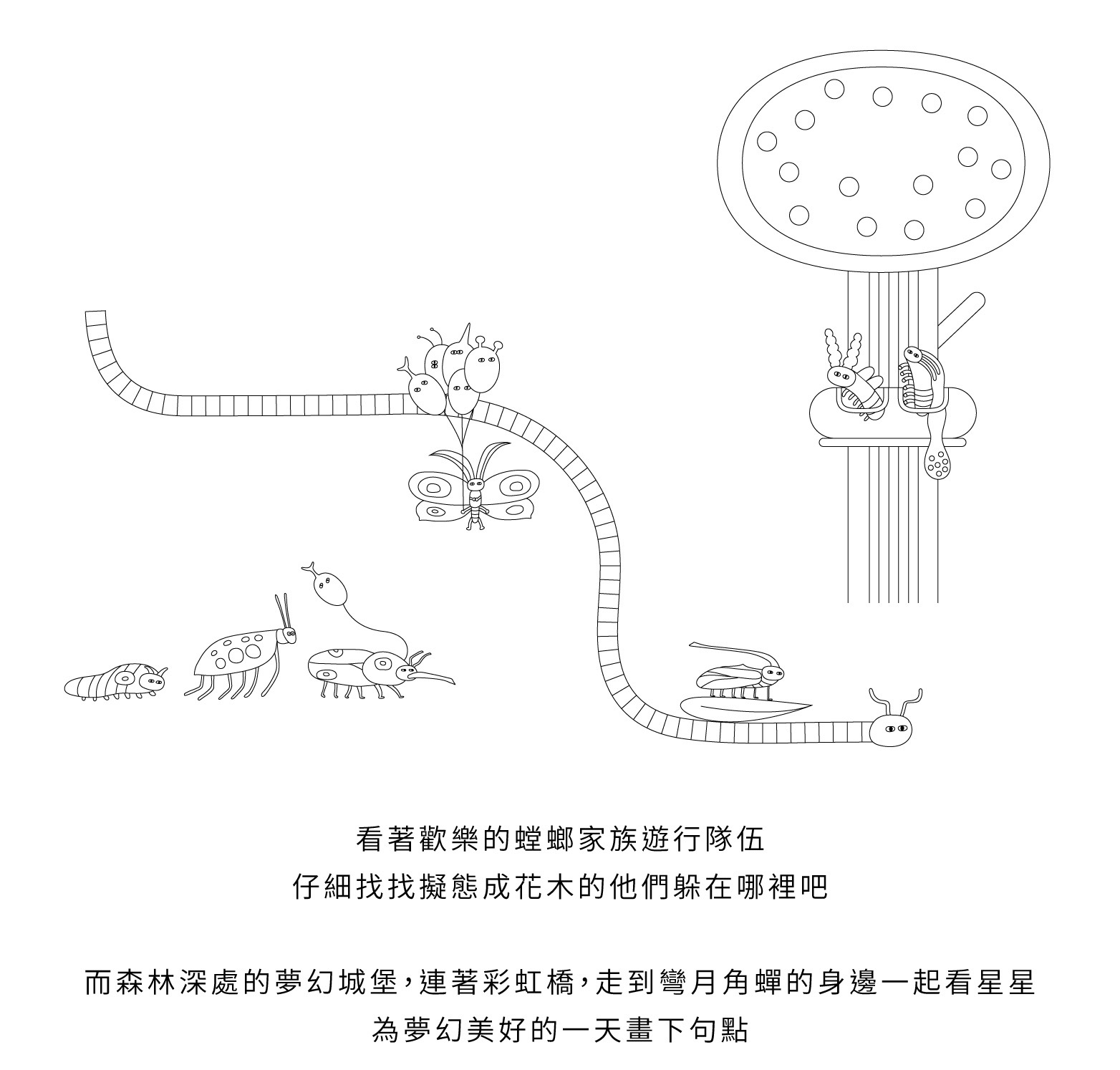 大自然是一座遊樂園,加入小昆蟲的遊戲行列,恣意展開想像吧!