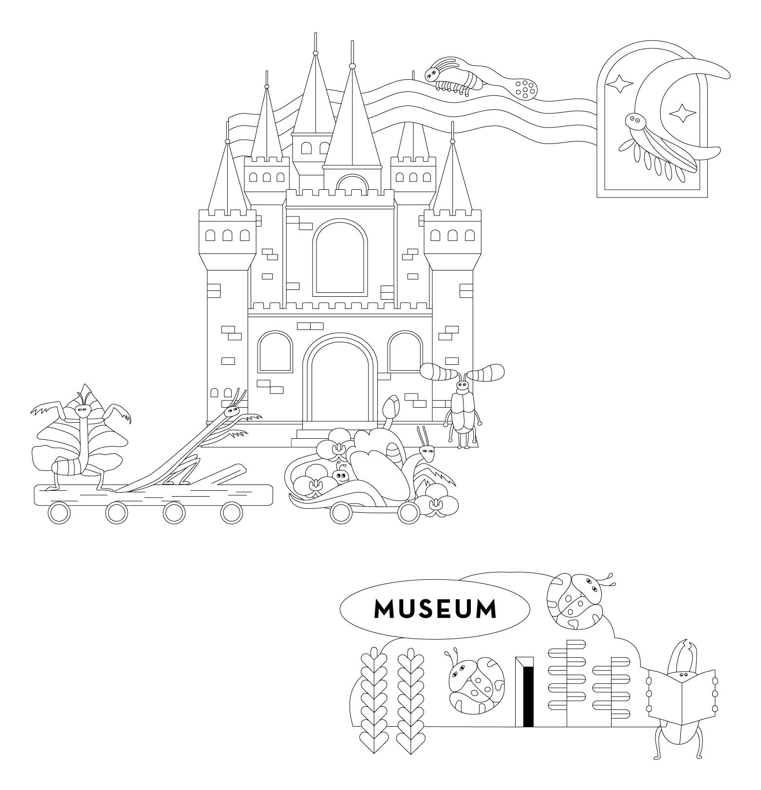 昆蟲們搭著城堡區的蜈蚣列車遊園,