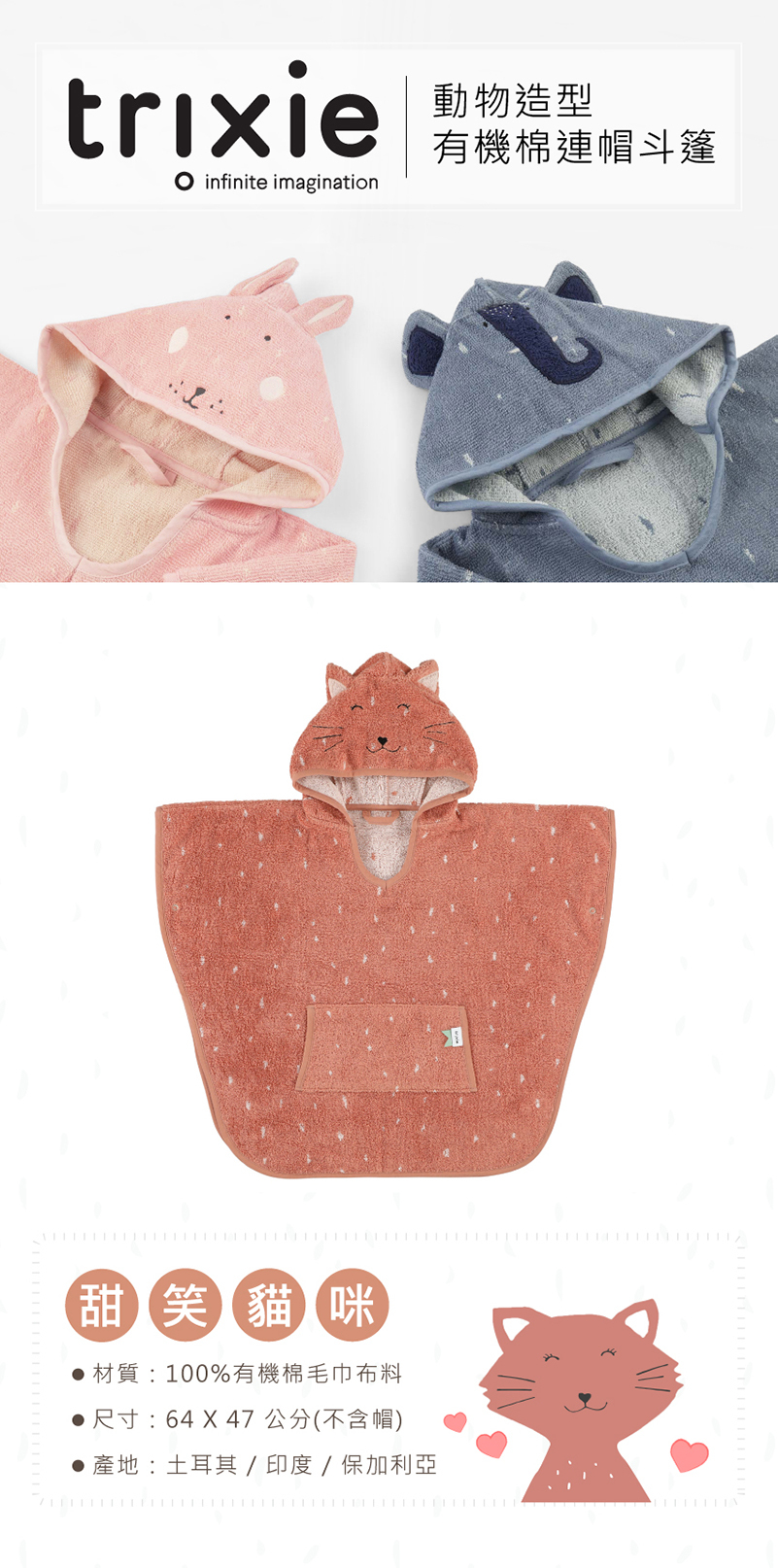 trixie 動物造型有機棉連帽斗篷-甜笑貓咪