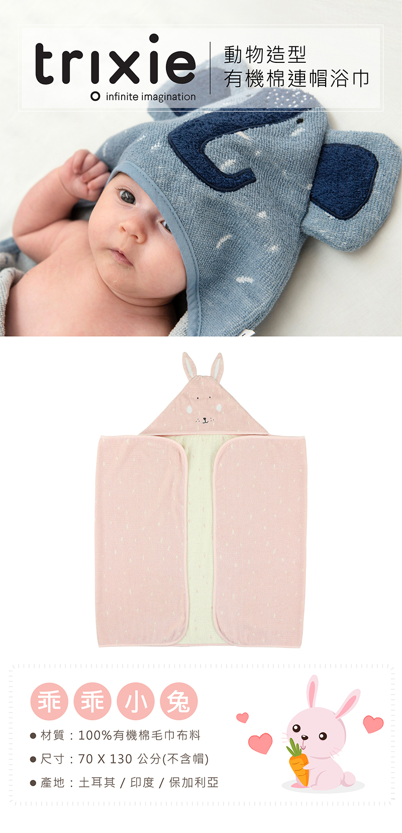 trixie 動物造型有機棉連帽浴巾-乖乖小兔