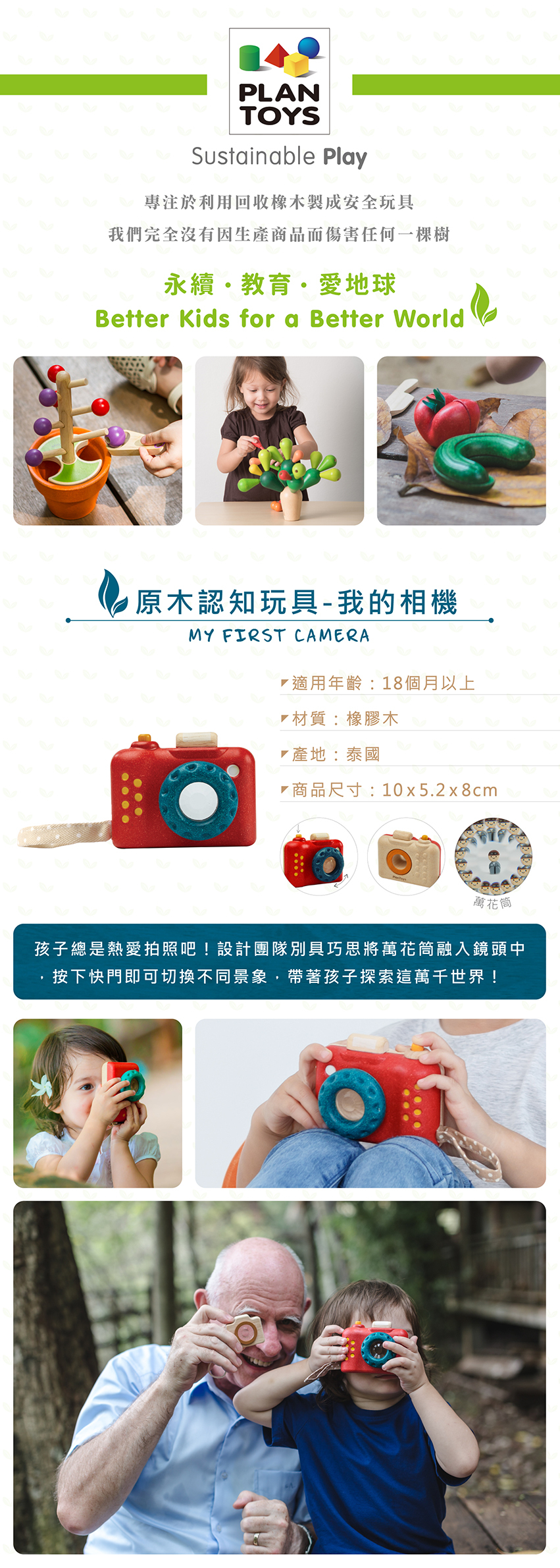 商品簡介 : 孩子總是熱愛拍照吧!設計團隊別具巧思將萬花筒融入鏡頭中,按下快門即可切換不同景象,帶著孩子探索這萬千世界!