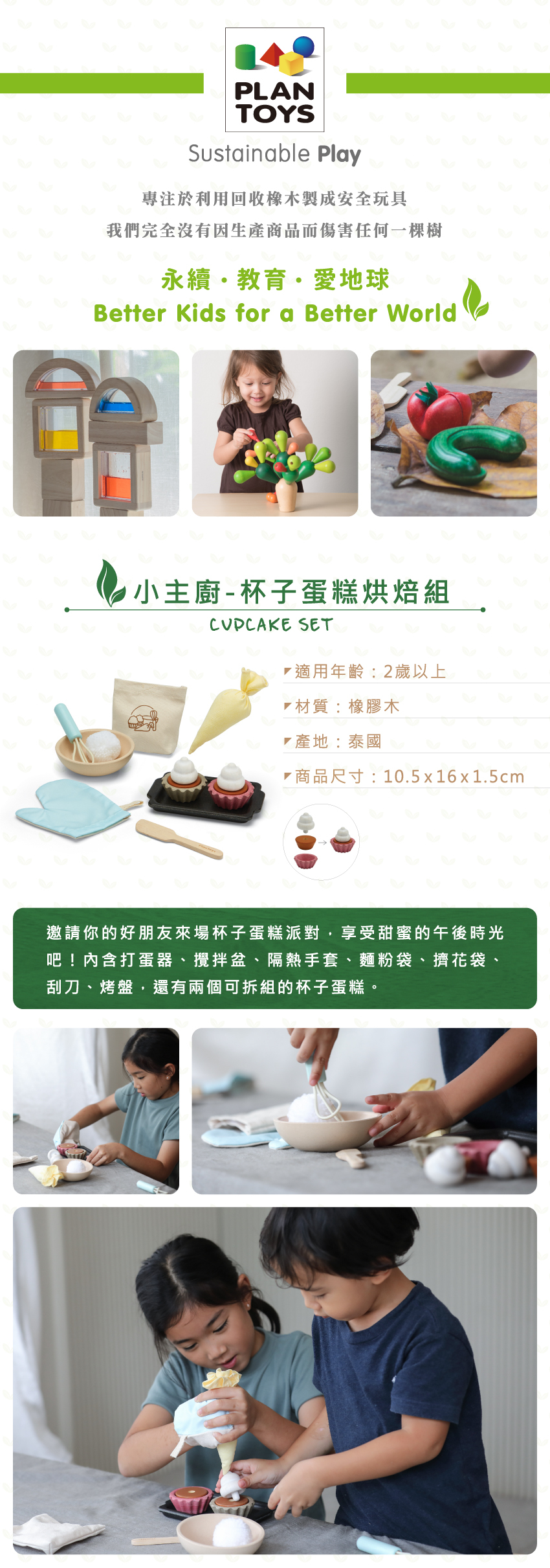 商品簡介 : 邀請你的好朋友來場杯子蛋糕派對,享受甜蜜的午後時光吧!內含打蛋器、攪拌盆、隔熱手套、麵粉袋、擠花袋、刮刀、烤盤,還有兩個可拆組的杯子蛋糕。
