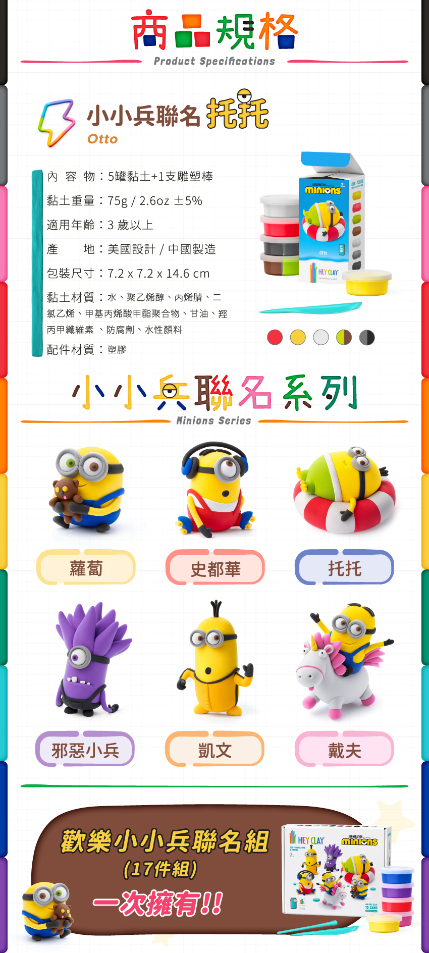 Hey Clay 智塑輕黏土-小小兵聯名-托托(6件組)
