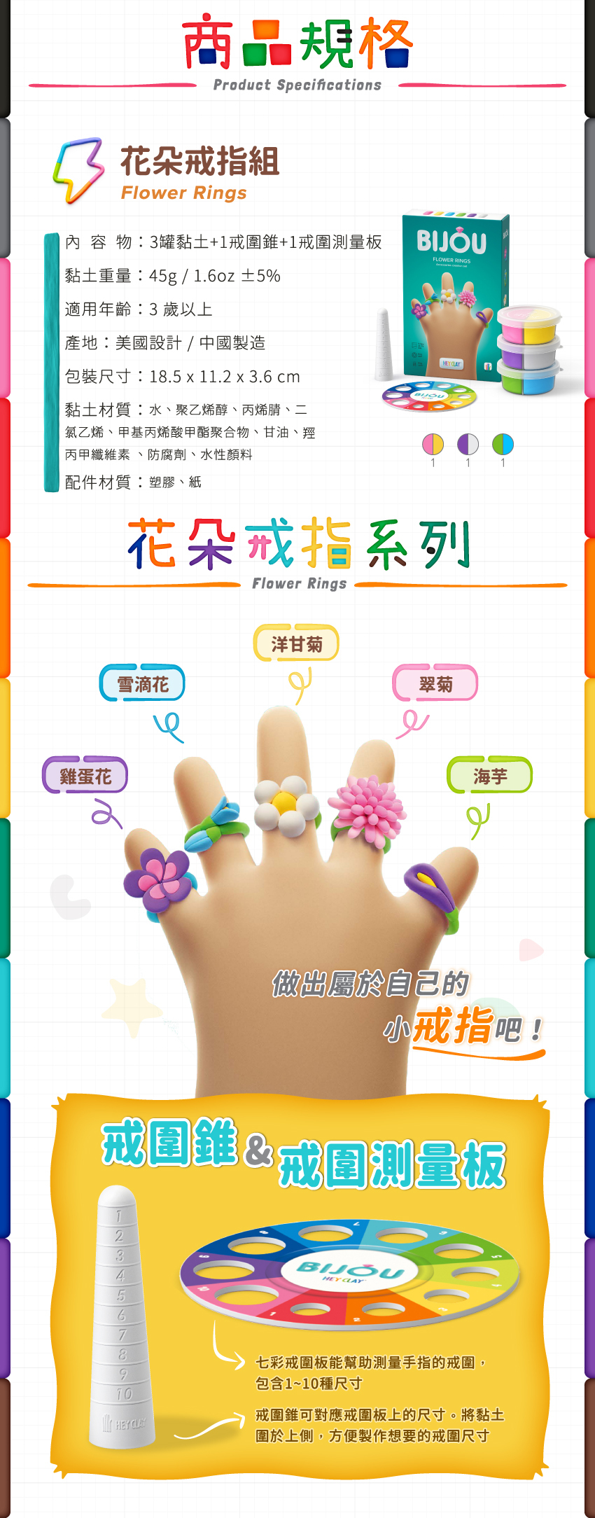 Hey Clay 智塑輕黏土-花朵戒指組(5件組)
