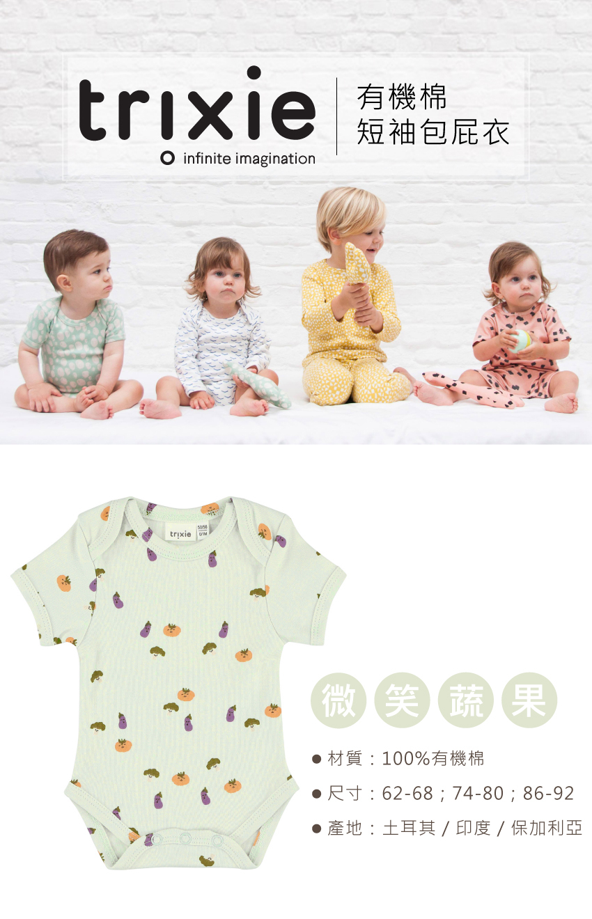 trixie 有機棉短袖包屁衣-微笑蔬果