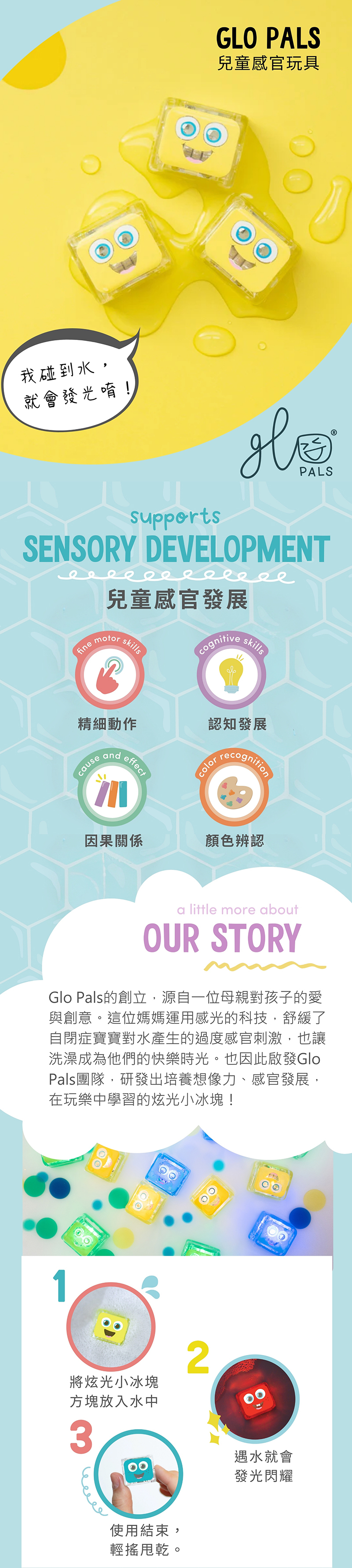 遇水發亮的炫光小冰塊,讓孩子愛上洗澡!發光感應靈敏,遇水即亮、出水即滅。幫助低幼寶寶因果關係的聯想訓練,與小手手精細動作的抓握訓練!