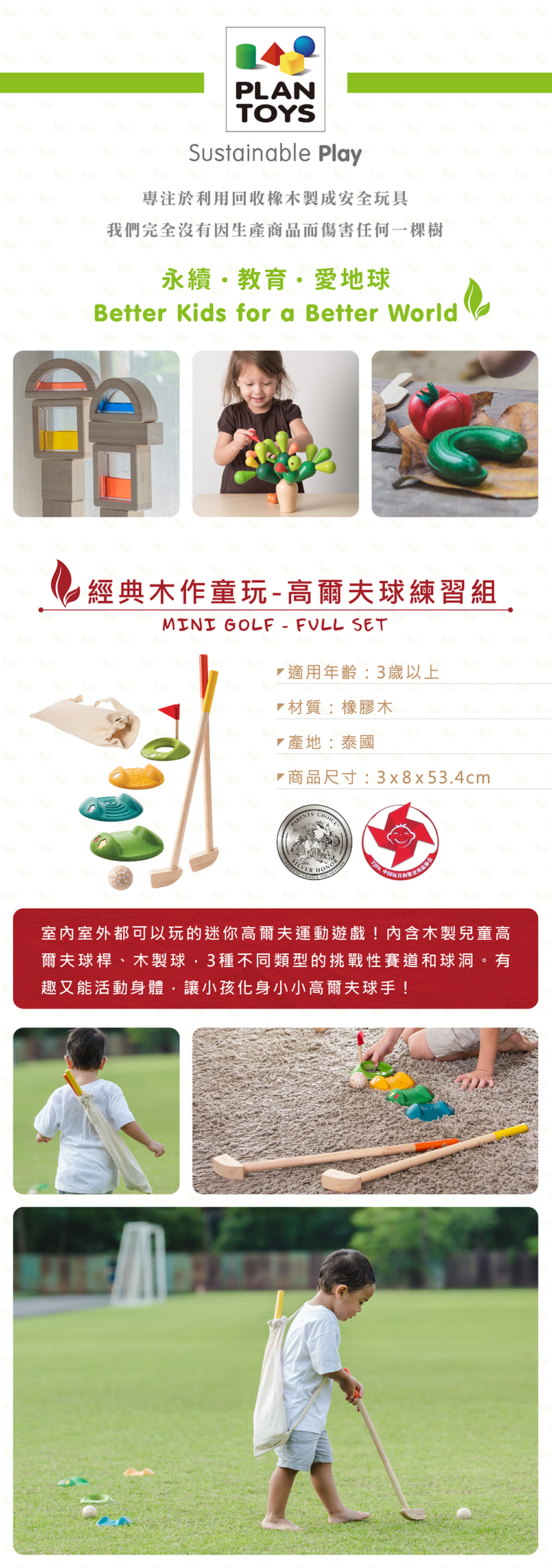 商品簡介 : 室內室外都可以玩的迷你高爾夫運動遊戲,內含木製兒童高爾夫球桿、木製球,3種不同類型的挑戰性賽道和球洞。有趣又能活動身體,讓小孩化身小小高爾夫球手。