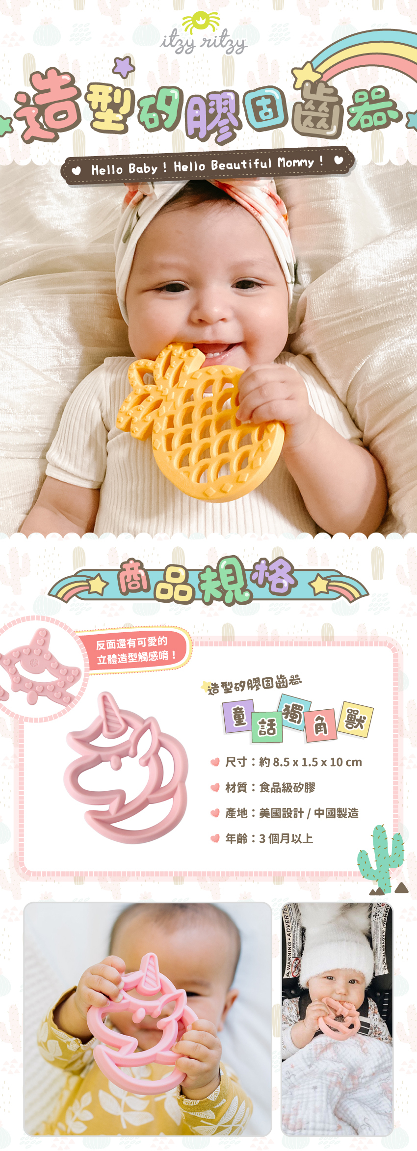 ● 背面凹凸觸感,有助按摩寶寶的牙齦、減緩長牙的不適感